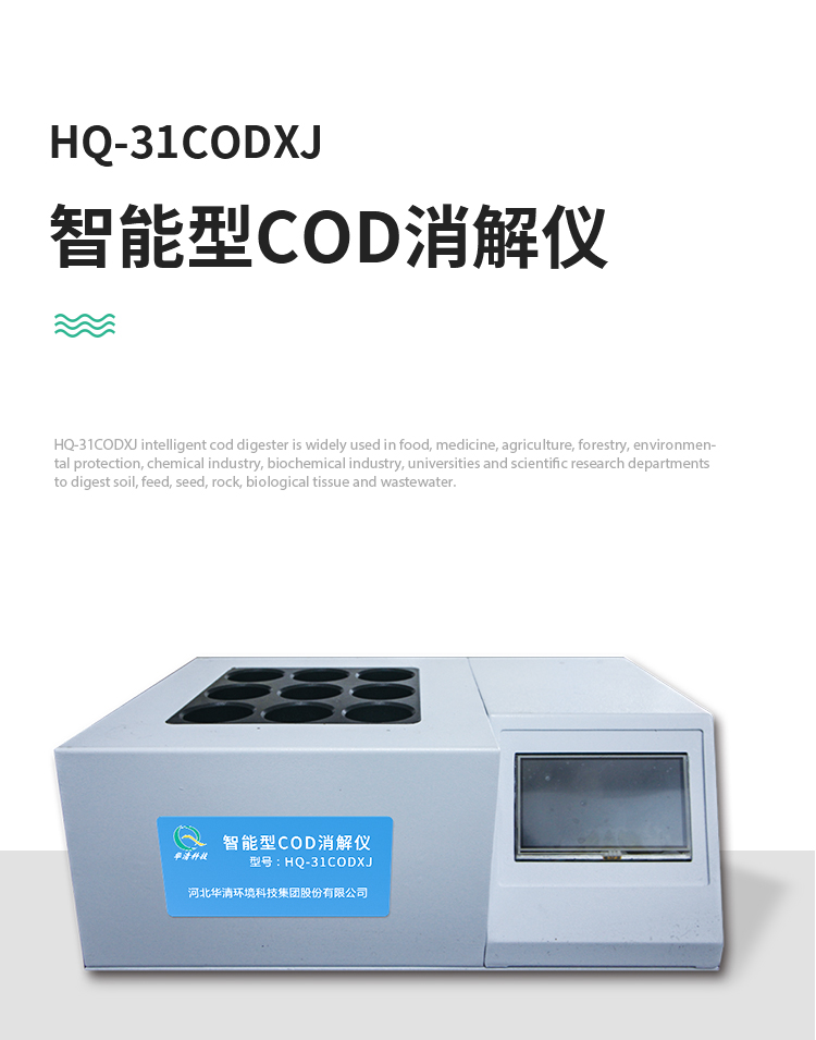 HQ-31CODXJ智能型COD消解儀廣泛應(yīng)用于食品、醫(yī)藥、農(nóng)業(yè)、林業(yè)、環(huán)保、化工、生化等行業(yè)及高等院校、科研部門對土壤、飼料、種子、巖石、生物組織、廢水等做消解處理。
