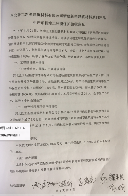 河北匠工新型建筑材料有限公司驗收意見.doc